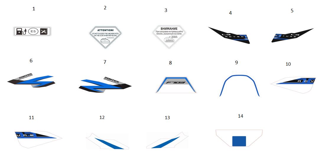 ZT703-F Fuel Tank Top Decal (Starry Sky Blue/Polymer/High Viscosity)